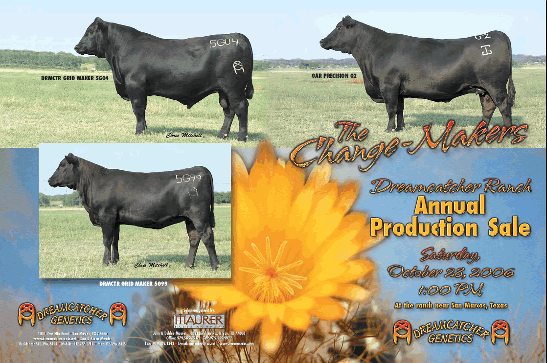 Top Bred Heifer: Lot 117–DRMCTR Grid Maker 5G99, 3-18-05 female by G A R Grid Maker. Bred to Bon View New Design 1407. To 7 S Ranch, Emory, TX, for $40,000, one-half interest.